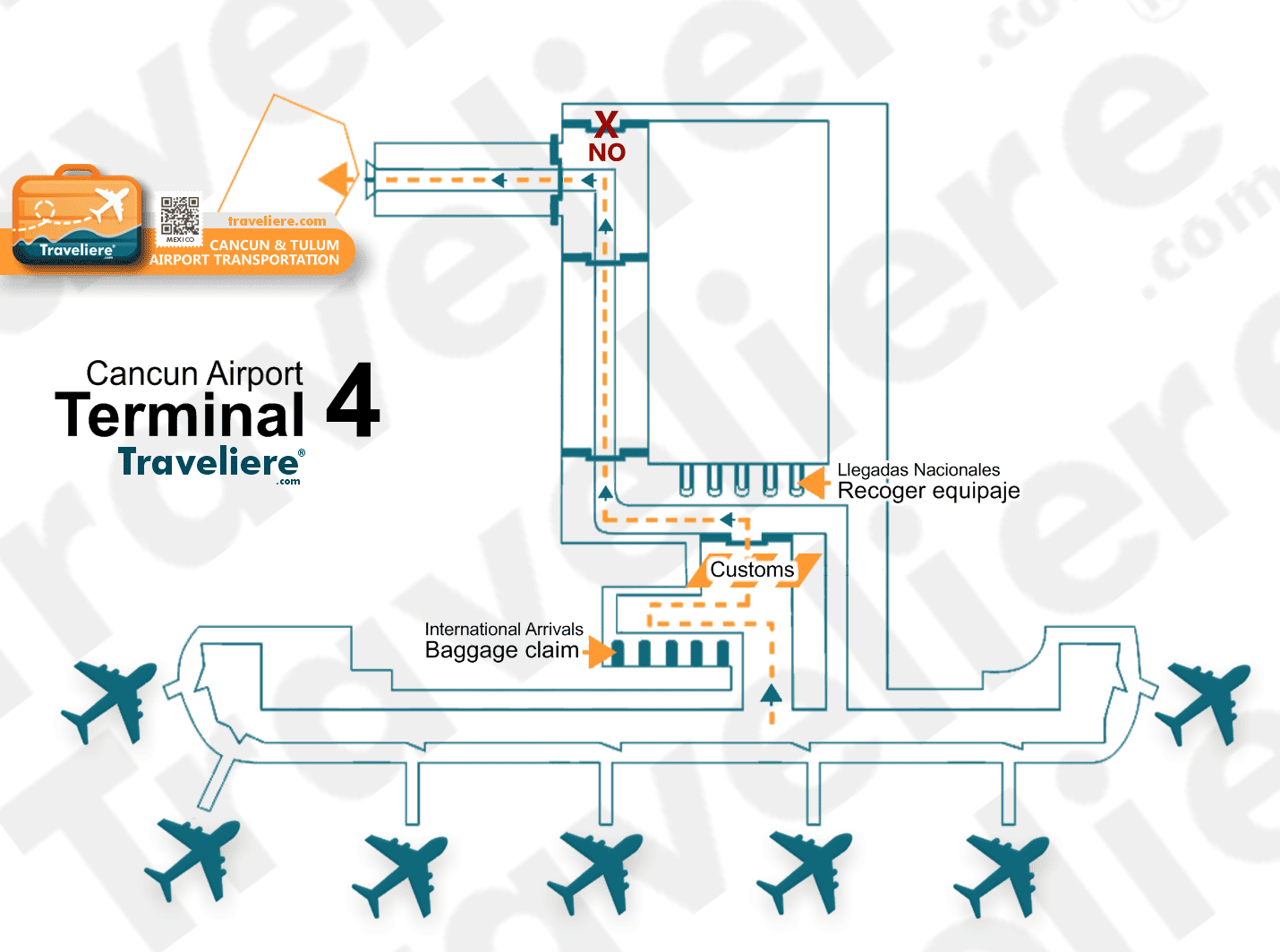 Preview of Cancun Airport Map 2025 from Terminal 4, customs, baggage claim and gates for arrival and departure transportation